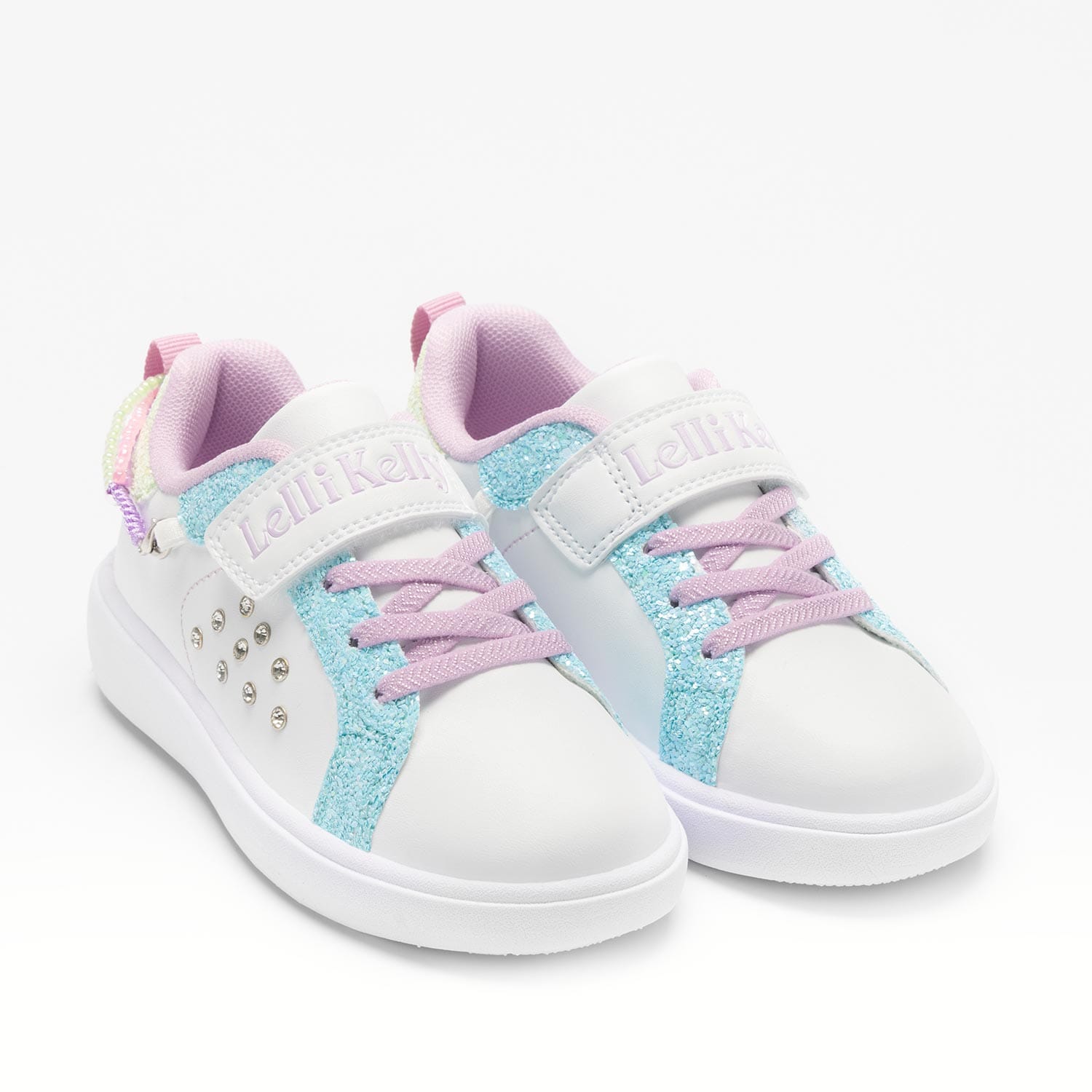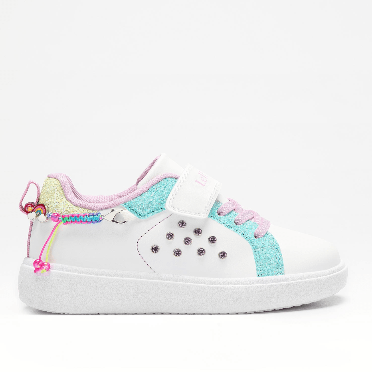Белый базовый цвет с стразами по бокам.