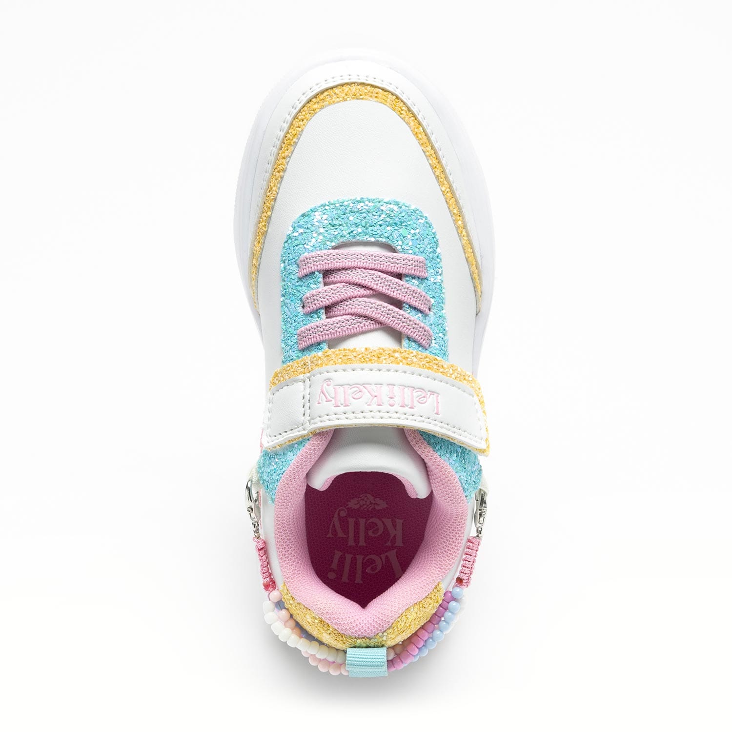Верх из технического материала с вставкой многоцветного блеска, яркий и сияющий.