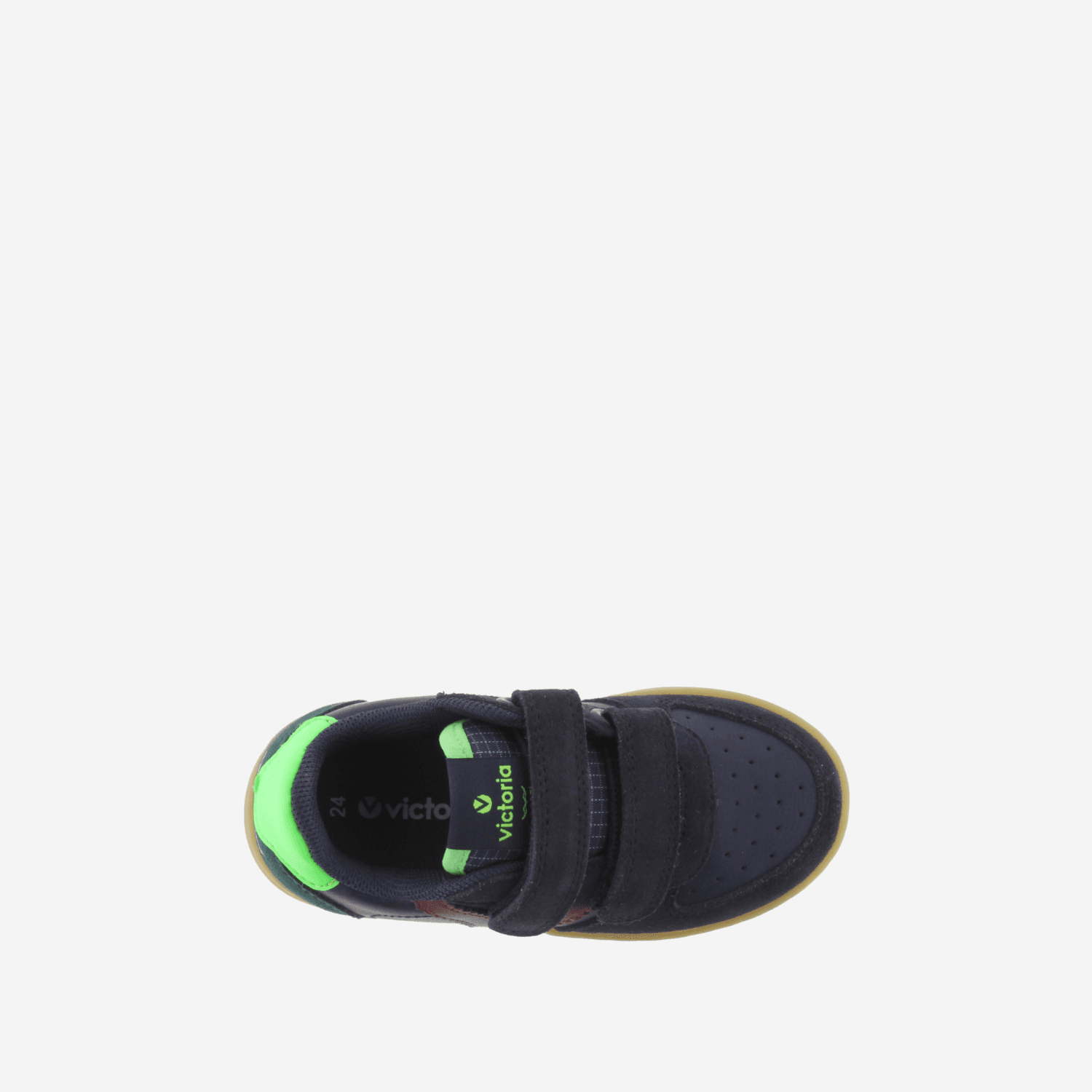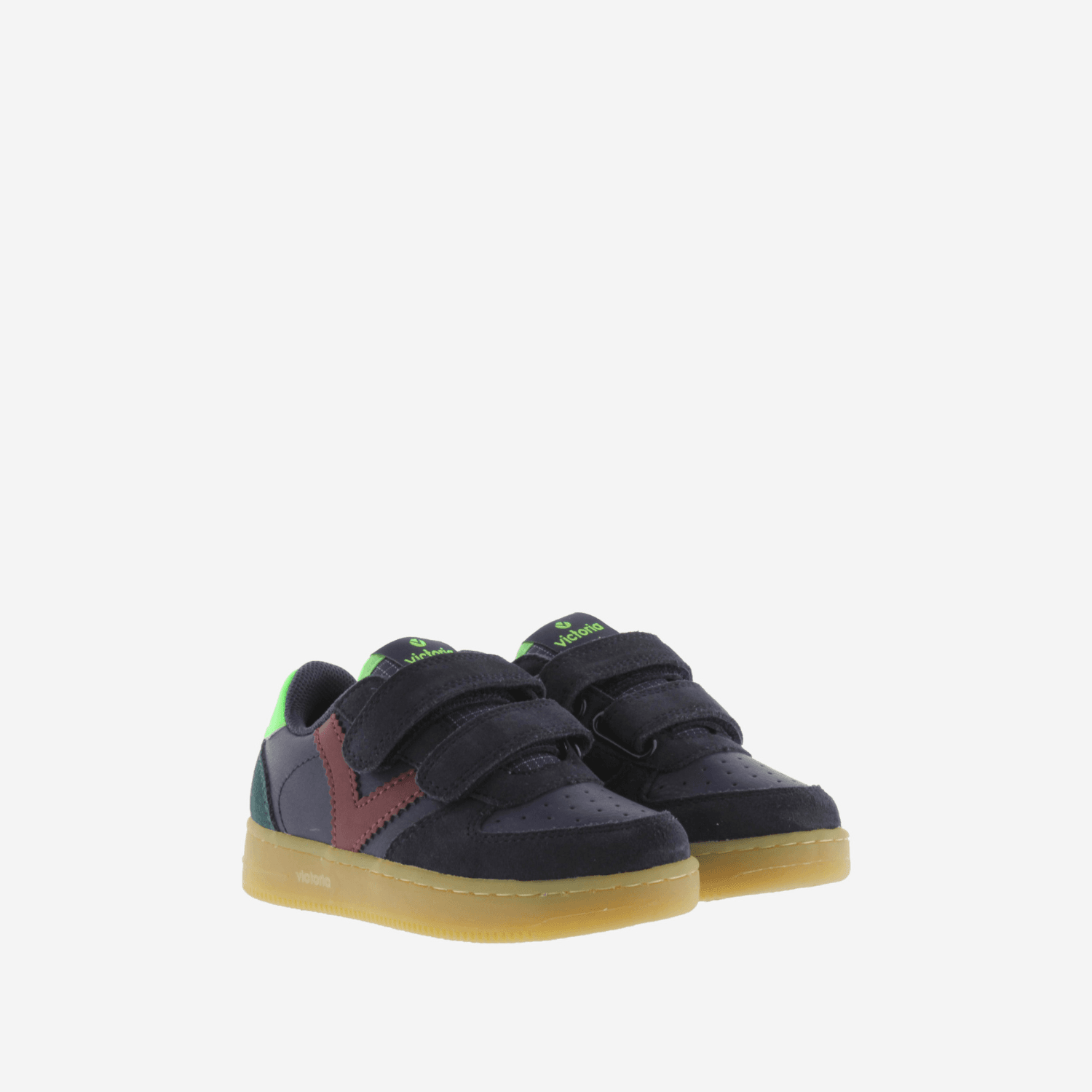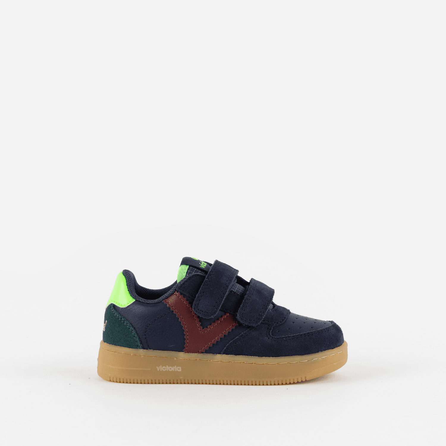 Спортивные кроссовки для мальчиков, изготовлены из искусственной кожи с тональными вставками из серраже, обеспечивая современный и прочный стиль. Ретро-логотип «V» Victoria на боку и цветной элемент на пятке создают яркий и привлекательный дизайн.